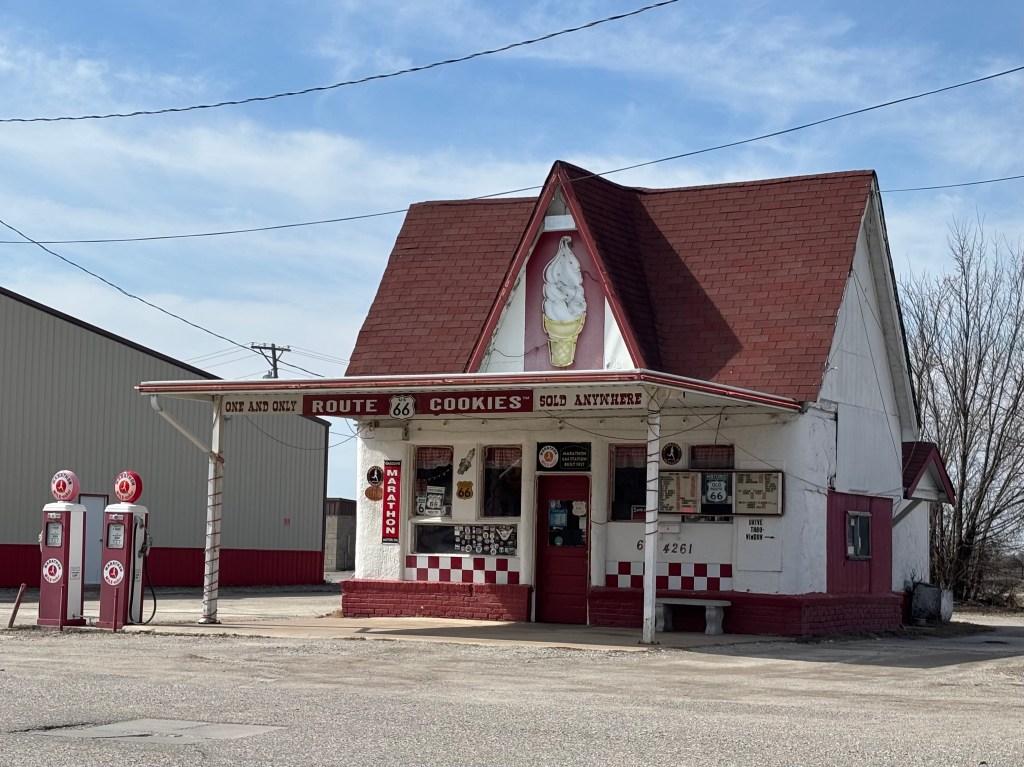 In Baxter Springs, the Baxter Springs Station (cleverly named) was constructed in 1930 as a gas station owned by the Independent Oil and Gas Company. it is now the Kansas Route 66 Visitors Center open from May to November (not March to November as the guide book said).
