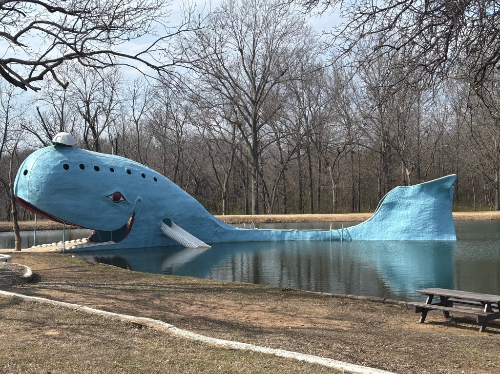 I moved on from this inspiring place to one which was sweet but rather silly – the Blue Whale. Hugh Davis built this Blue Whale in July 1972 as a surprise anniversary present for his wife, Zelta, who collected whale figurines. The Blue Whale and its pond became a favorite swimming spot for both locals and travelers. It is still owned by Davis’ daughter, but swimming is no longer permitted. You can walk through the whale and once upon a time could slide down his fins (looks like litigation waiting to happen).