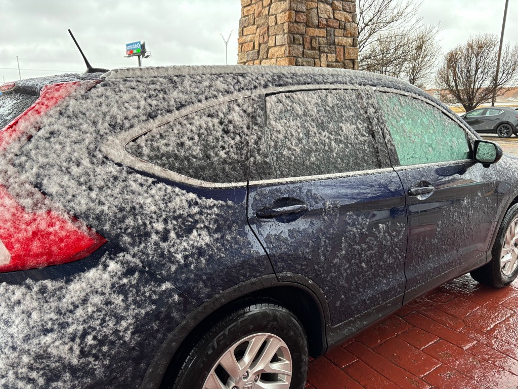 Yesterday ended in a dust storm, but today started with snow. I opened my shades to find the bottom part of the hotel window covered with snow and ice. Spring in Texas! I loaded up the car and headed off, hoping the weather would calm down.