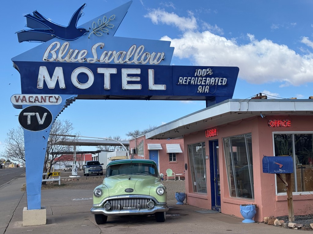 Route 66 runs straight through Tucumcari and many of the motels and restaurants built in the 1930s, 40s, and 50s are still in business today. It is small place with a population of 5278 recorded in the 2020 census but the largest city on the highway between Amarillo, TX and Albuquerque, NM.