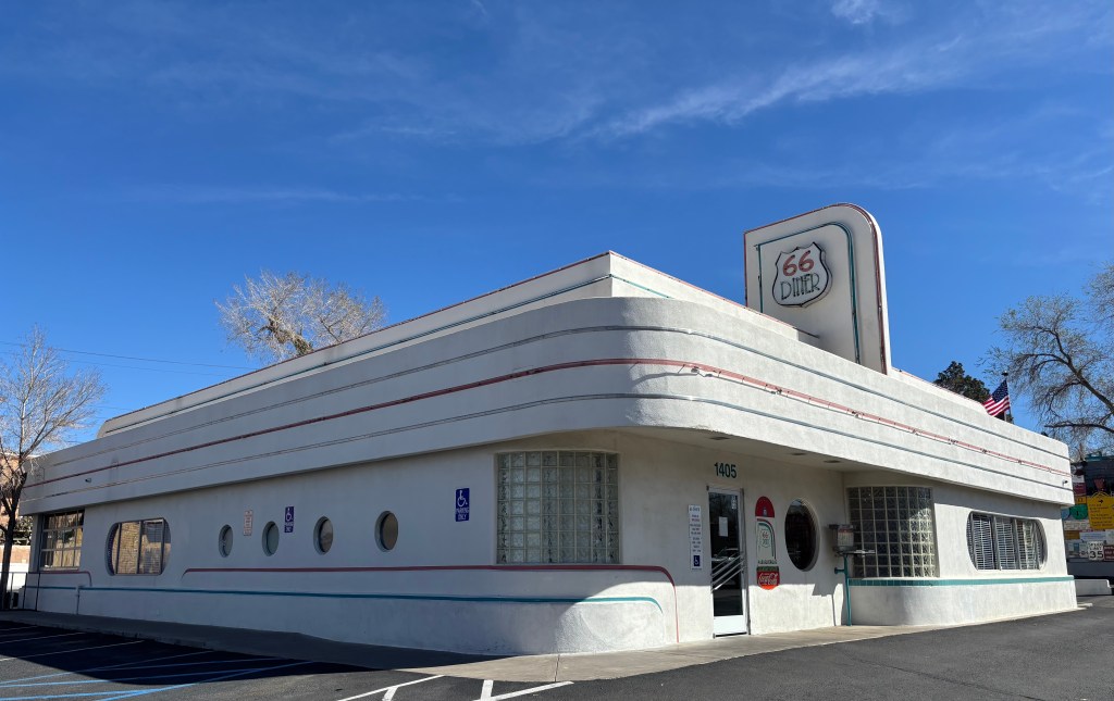 The 66 Diner started service in 1987 just after the decommissioning of Route 66. However, the diner’s building began as a 1940’s Phillips 66 gas station. The interior decor has been re-envisioned as a retro 1950’s diner. One end of the parking lot displays a vast vintage sign collection.