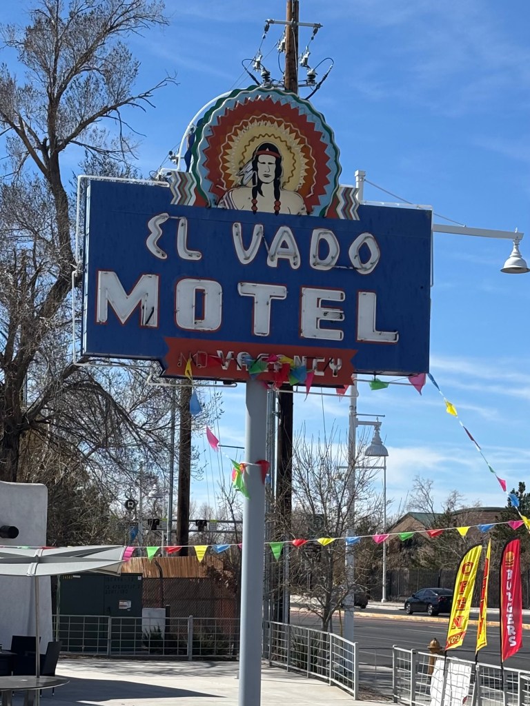 When the El Vado Motel opened in 1937, it was one of New Mexico’s first motels to greet Rout 66 travelers. Daniel Murphy, who built the El Vado, chose the name, Vado, which means “ford” in Spanish, for its location near the old Rio Grande crossing that has become Bridge Street. I tried a month ago to get reservations there, but the motel was completely sold out for an event. I can see why.