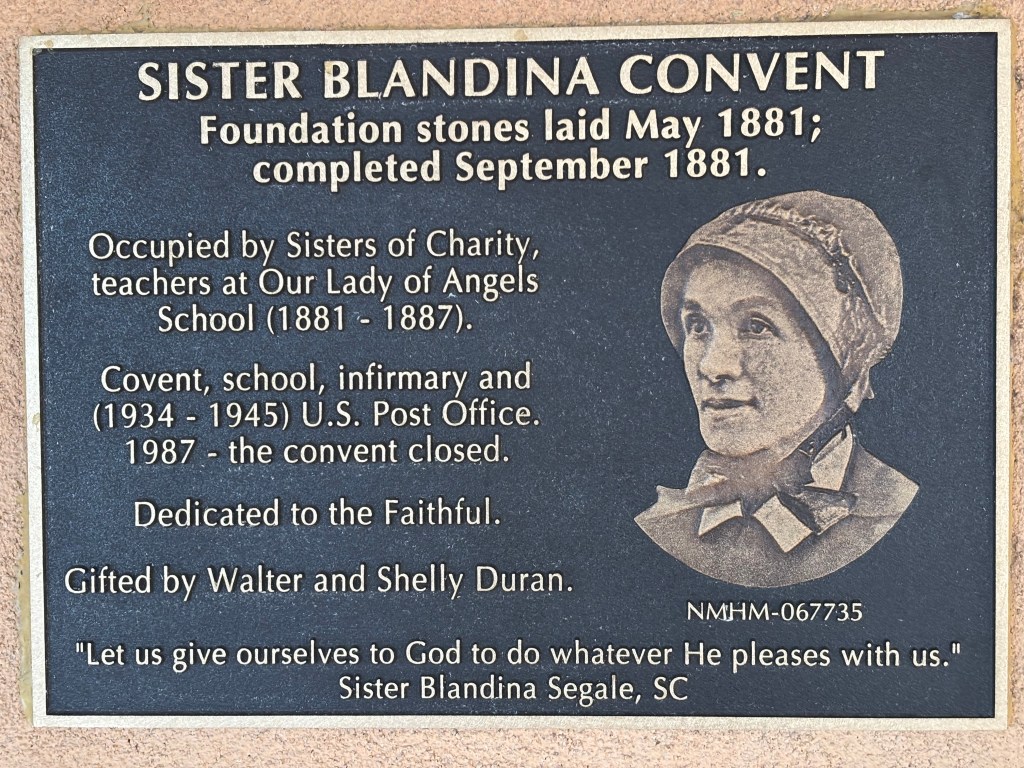 Attached to the church is the Sister Blandina Convent. Sister Blandina (1850-1941), was an Italian-born American Sister of Charity of Cincinnati and missionary. She became widely known through her service on the American frontier in the late 19th century. During her missionary work, she met, among others, Billy the Kid, and leaders of the Native American tribes of the Apache and Comanche. She served as an educator and social worker who worked in Ohio, Colorado, and New Mexico, assisting Native Americans, Hispanic settlers, and European immigrants. She died in Cincinnati at the age of 91. I had to come to New Mexico to learn about this amazing woman from my home town.