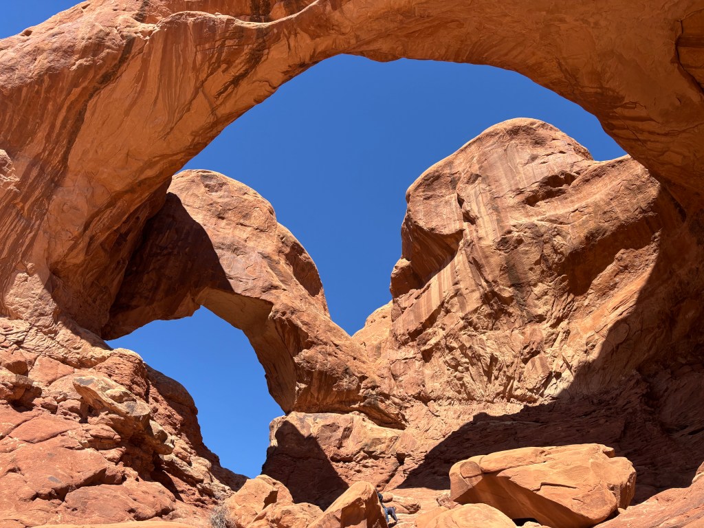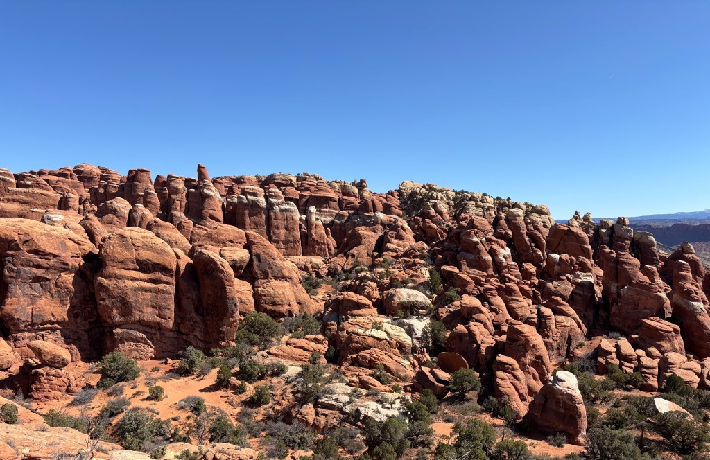 Today was a spectacular day. Cloudless, blue skies, lower winds, rising temperatures, a perfect day for exploring. And we were so close to the best exploring site – Arches National Park. For those who have not been – if you can get here, I highly recommend that you do.