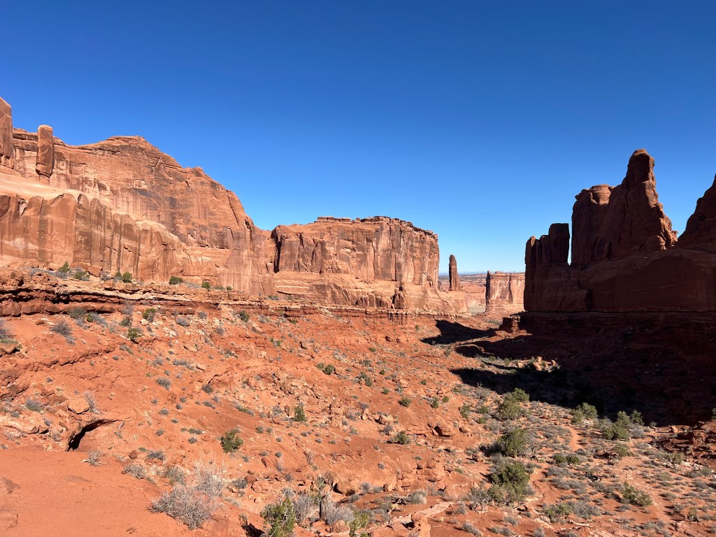 Park Avenue trail is a hike through a soaring rock “skyline” of massive fins and curiously carved towers.